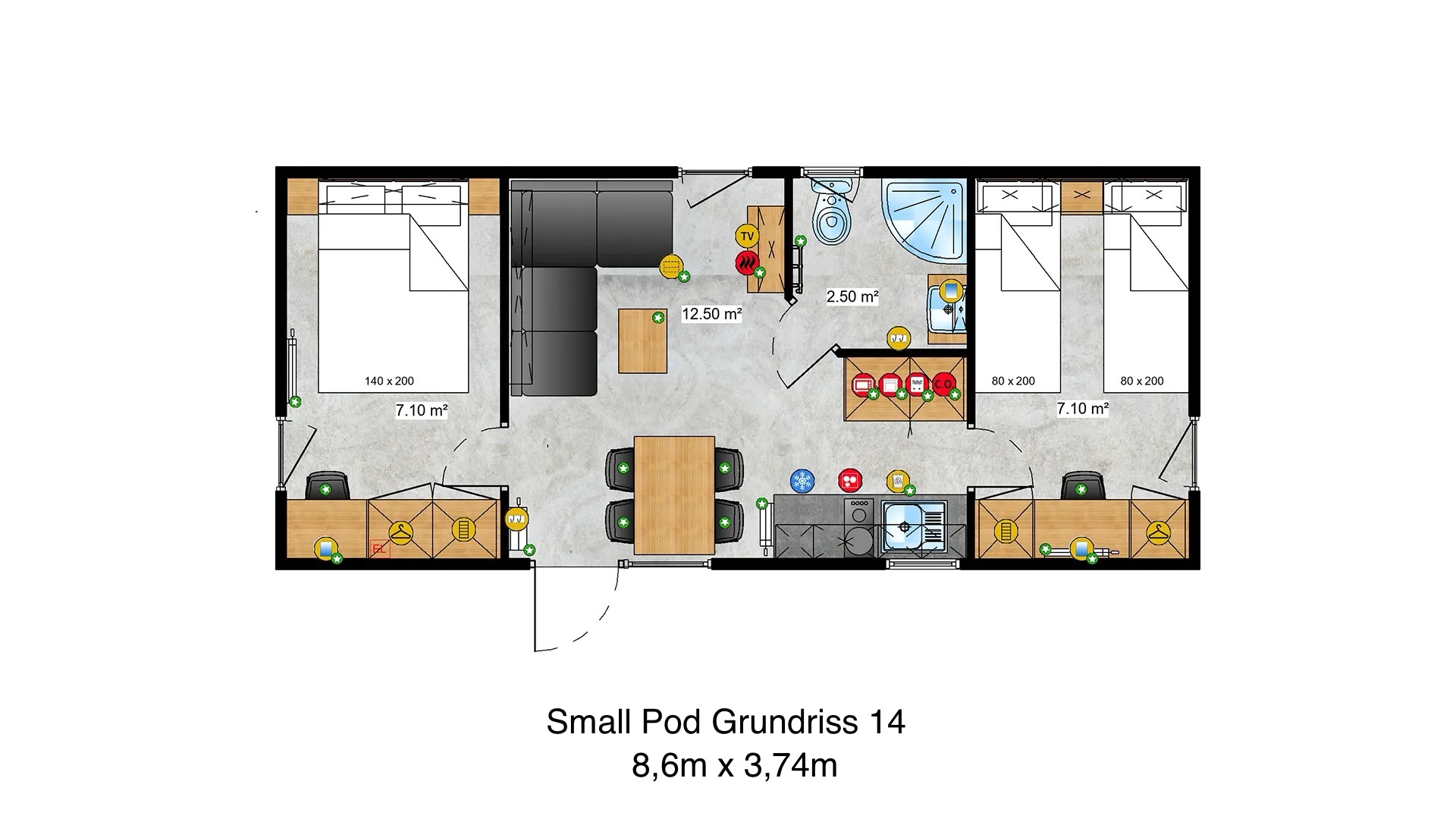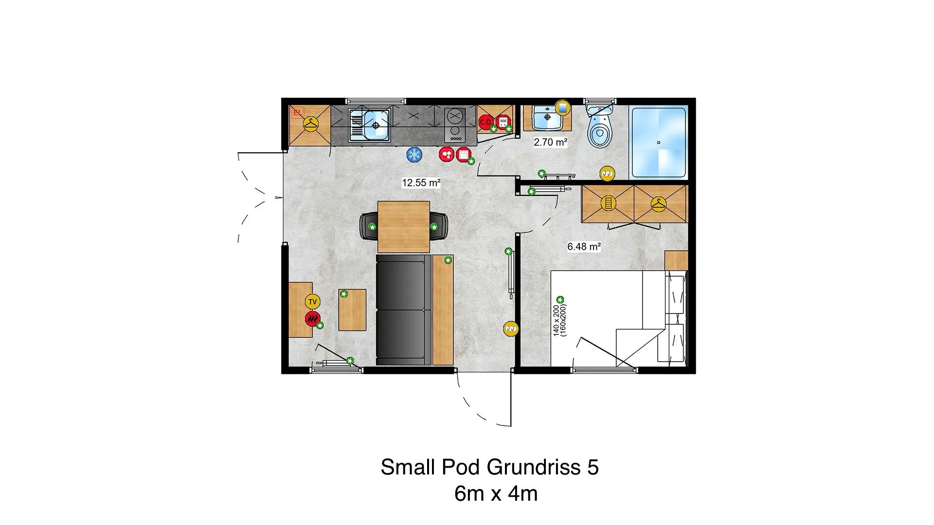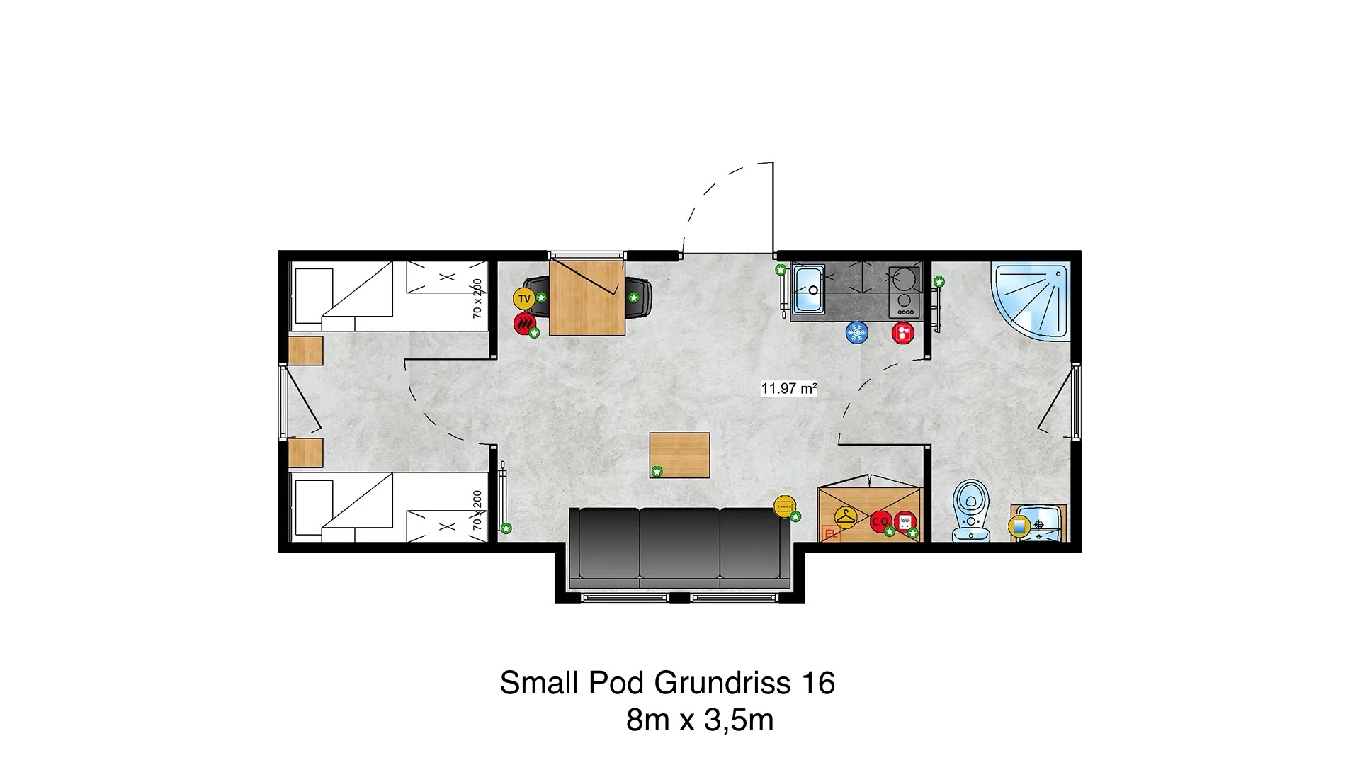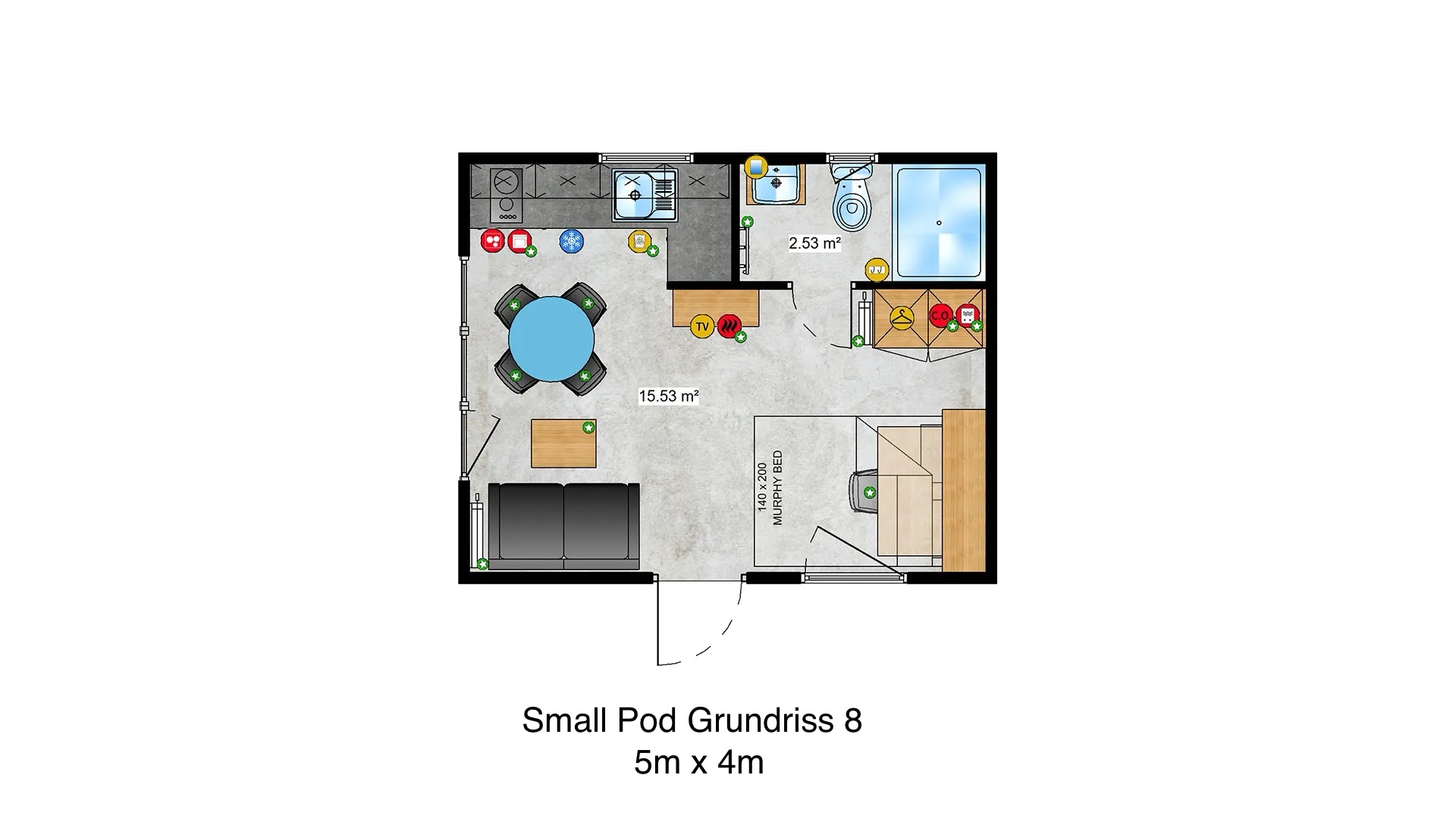 Unser kleinstes Haus im Angebot und dennoch extrem funktionell und effizient. Auch auf 16 m² können alle Funktionen erhalten bleiben und jede Fläche wird optimal genutzt. Ideal als kleiner Rückzugsort, Ferienhaus, Anbau, Studentenapartment oder als Vermietungsobjekt. Die Nutzungsmöglichkeiten sind vielseitig – entscheide selbst!