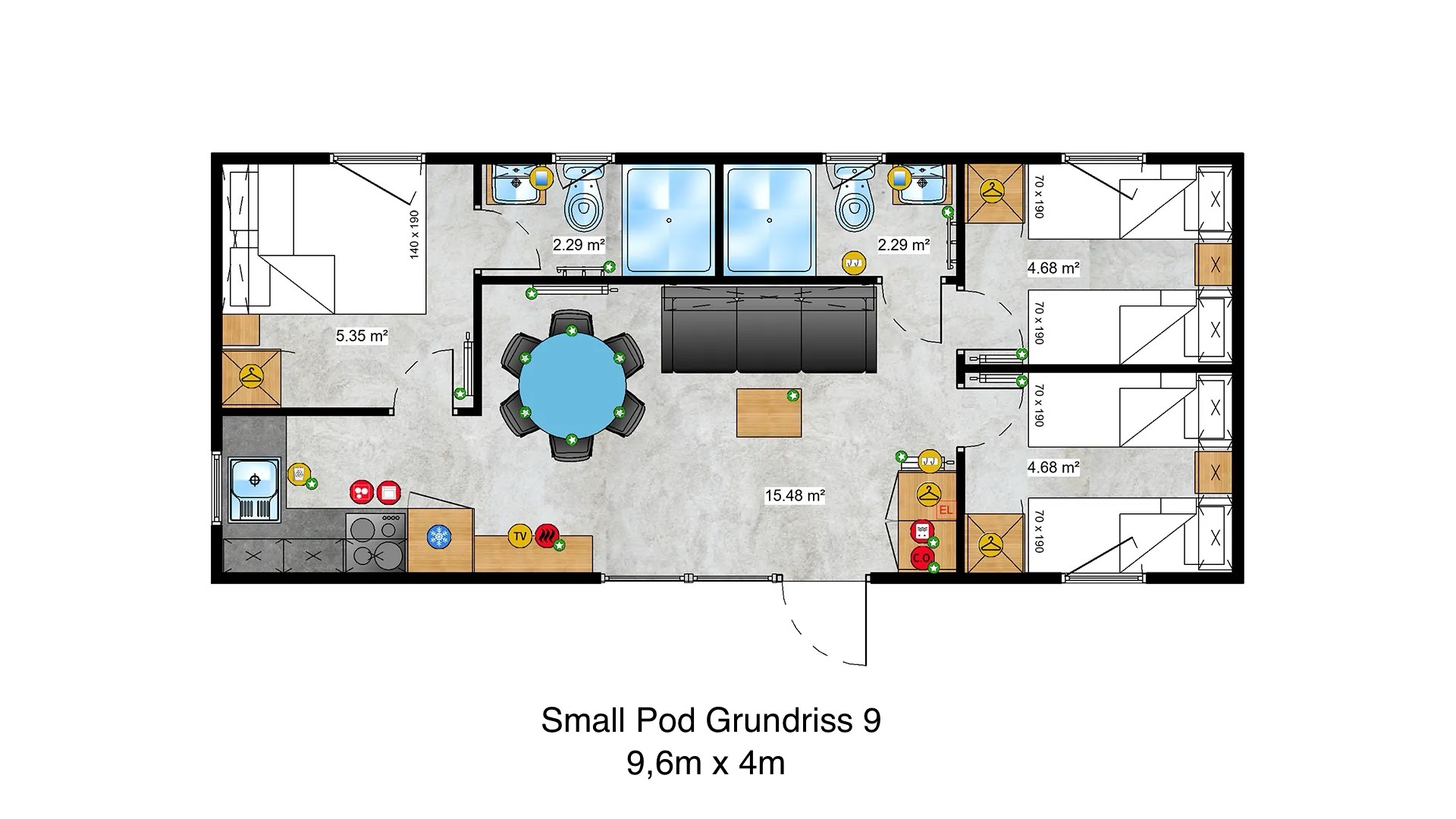 | 4x4m | 9,6x4m | Von 13,88 m² bis 34,73 m² |