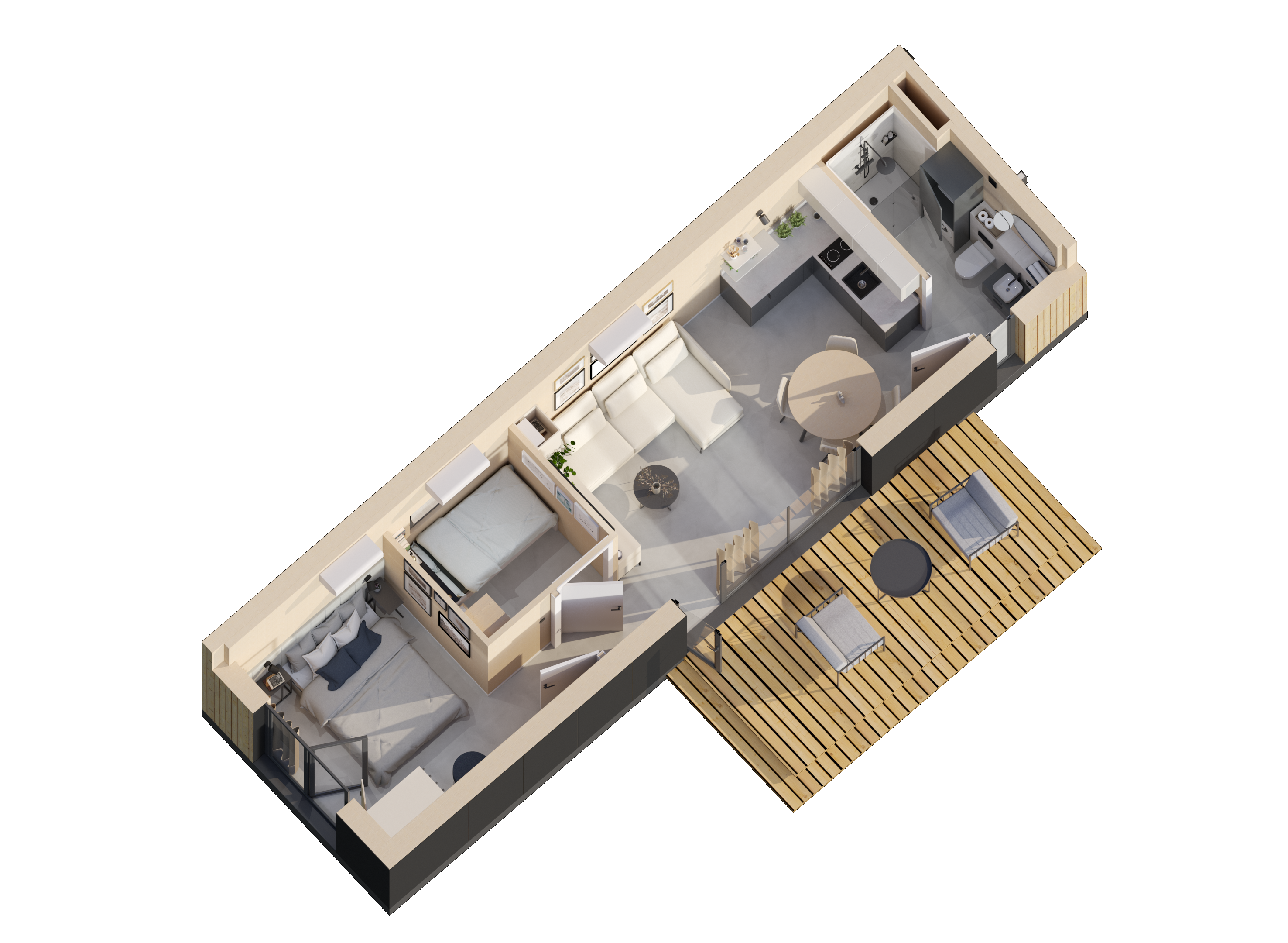 Bris XL ist die Erweiterung zum klassischen Modell BRIS und wird um ein zusätzliches Schlafzimmer ergänzt. Es ist für 1-2 Personen gedacht, die freier und bedarfsgerechter leben möchten. Aber auch als Ferienhaus ist das BRIS XL perfekt geeignet.