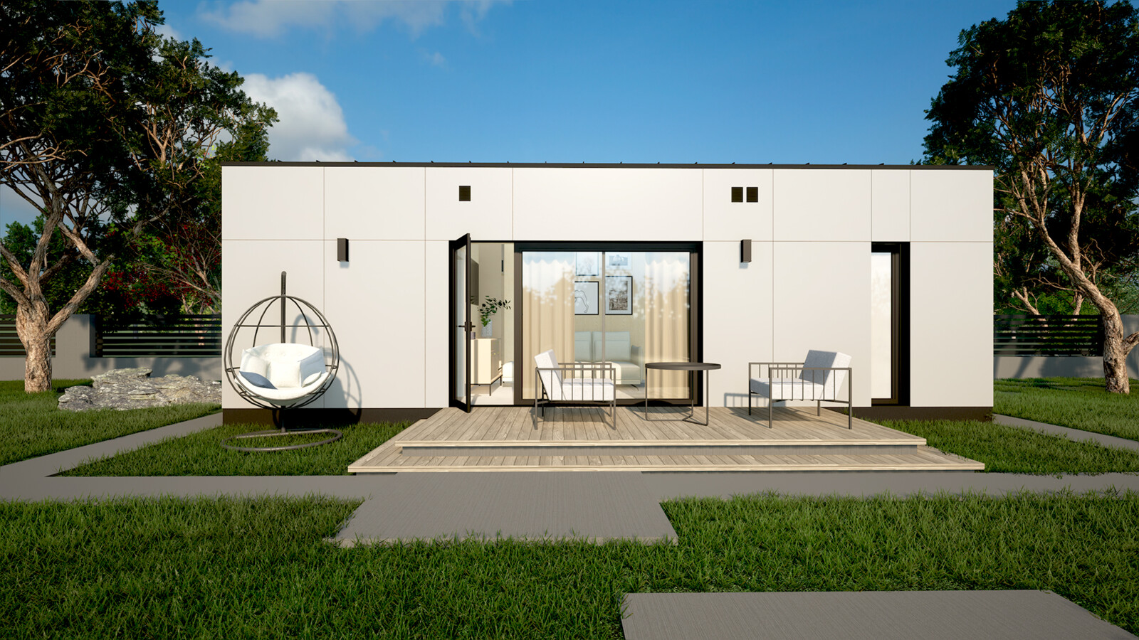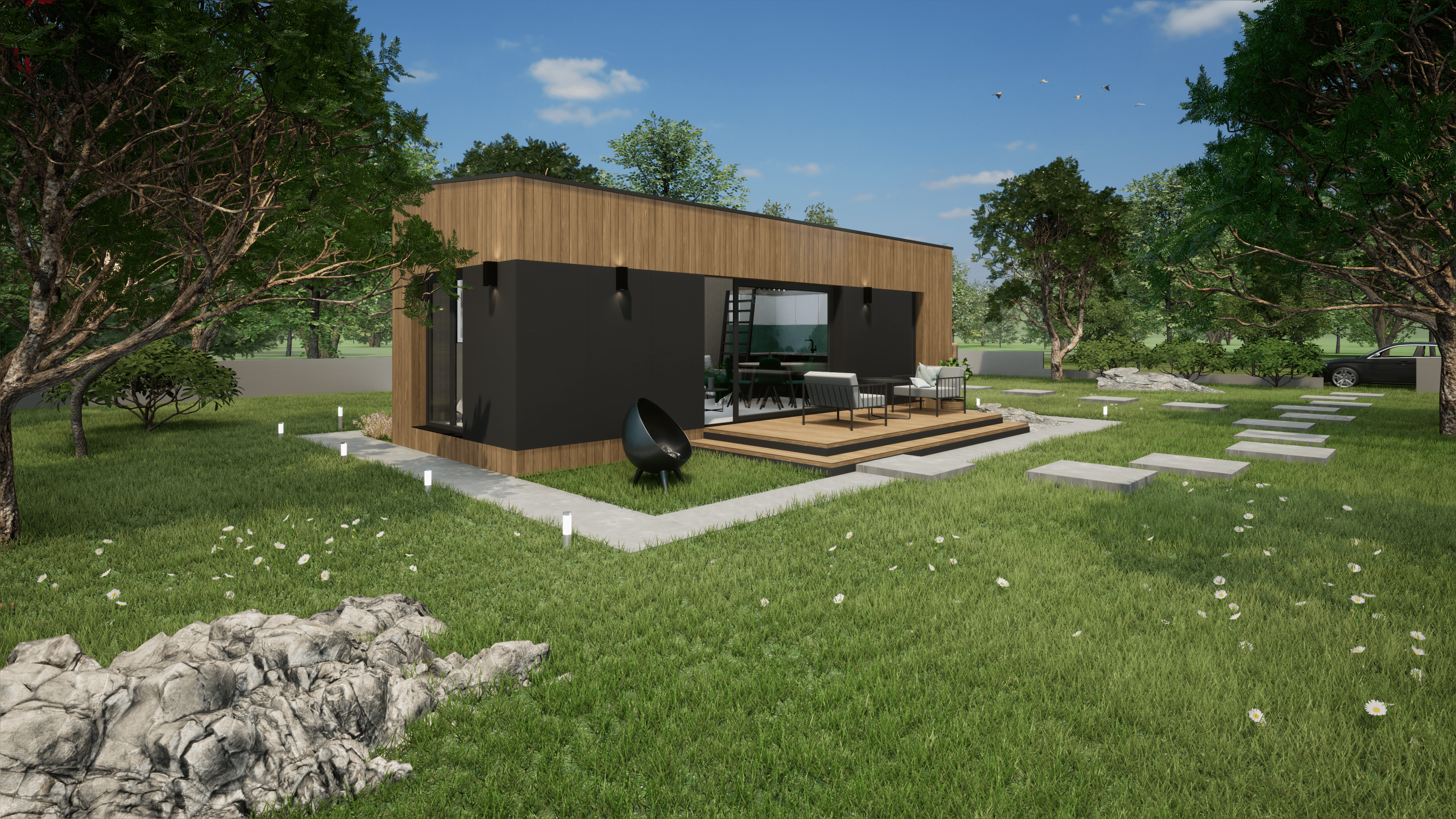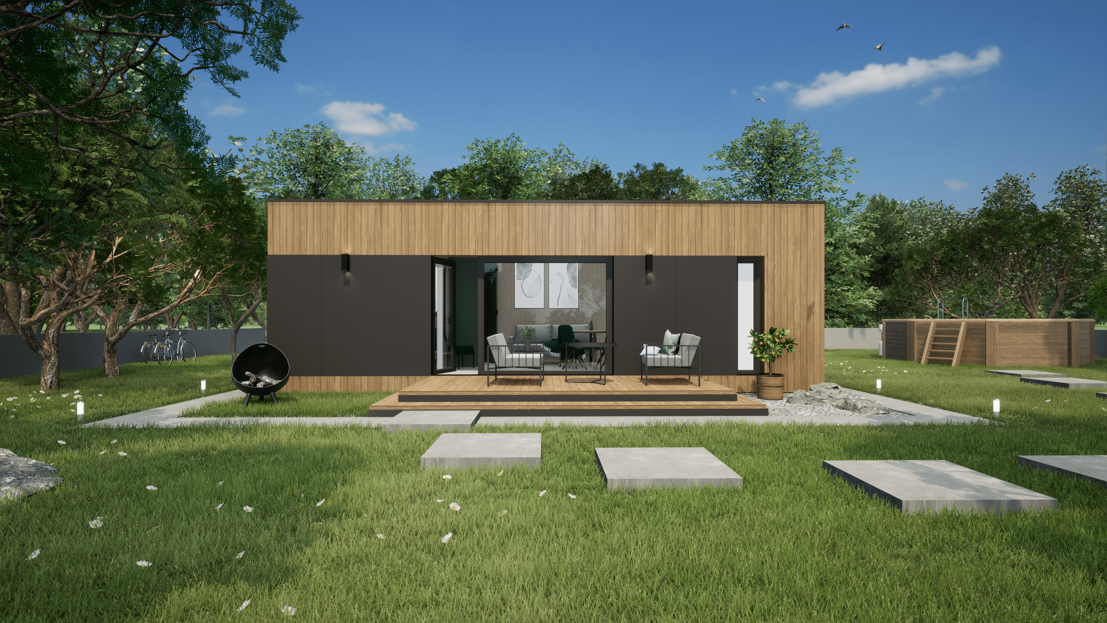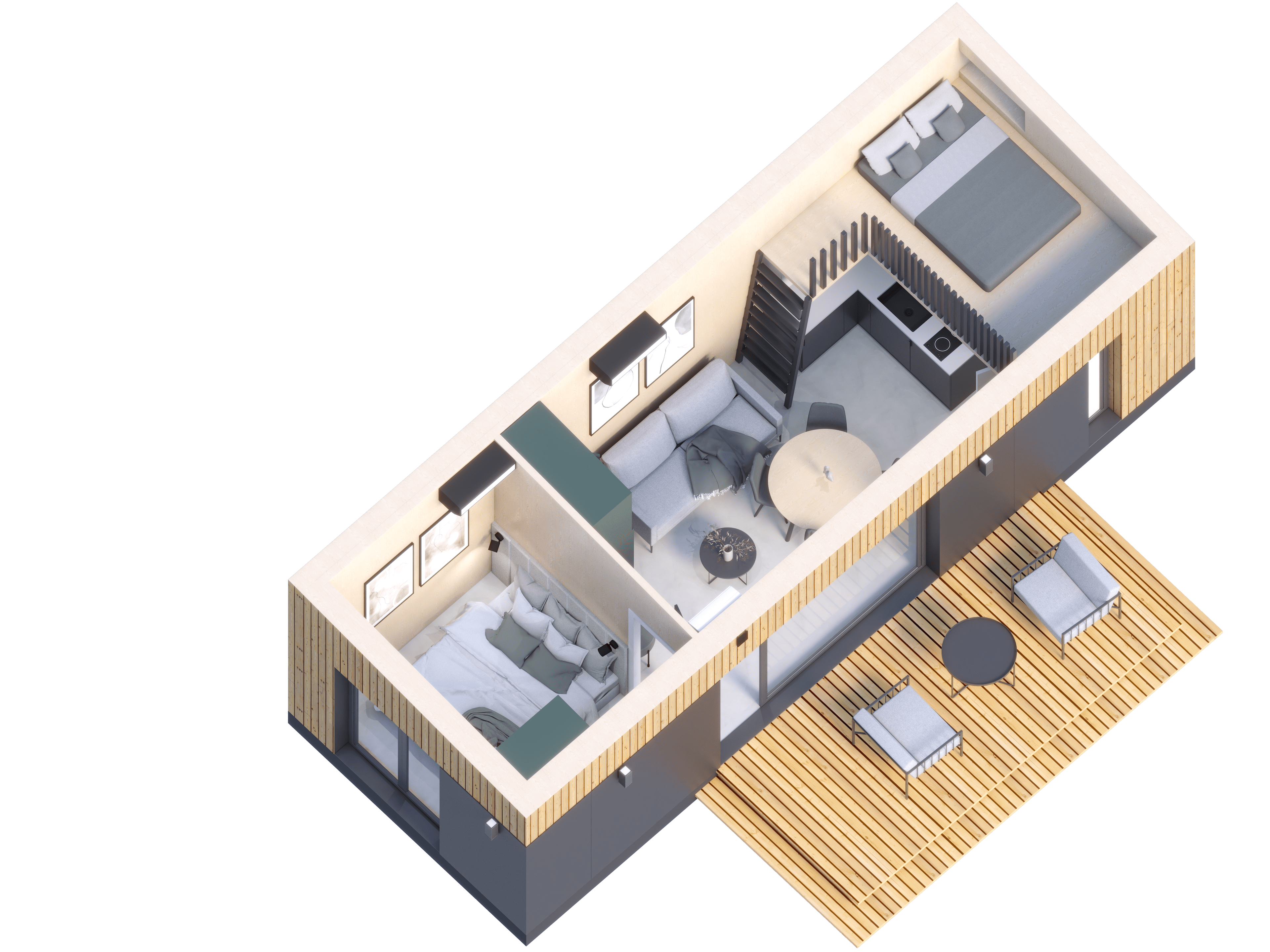 Bris ist ein einzigartiges Tiny Haus, das aus nur einem Modul besteht. Wir können die komplette Ausstattung und Einrichtung liefern und der Aufbau dauert nur einen Tag! Es eignet sich auch perfekt als Ferienhaus.