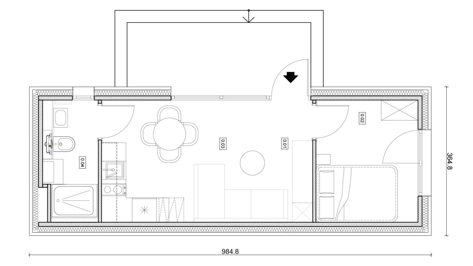 0.03 | Wohnzimmer mit Küche | 12,3 m² |