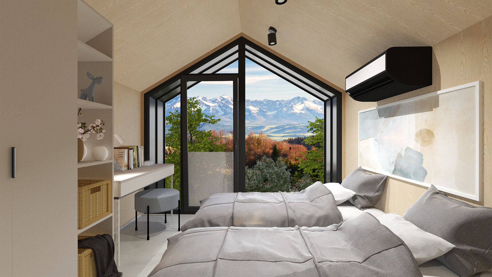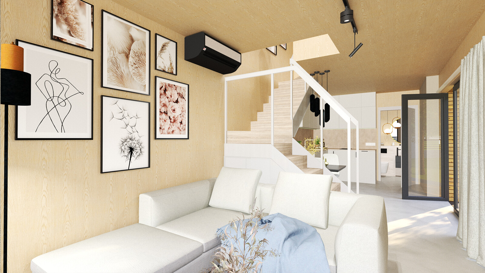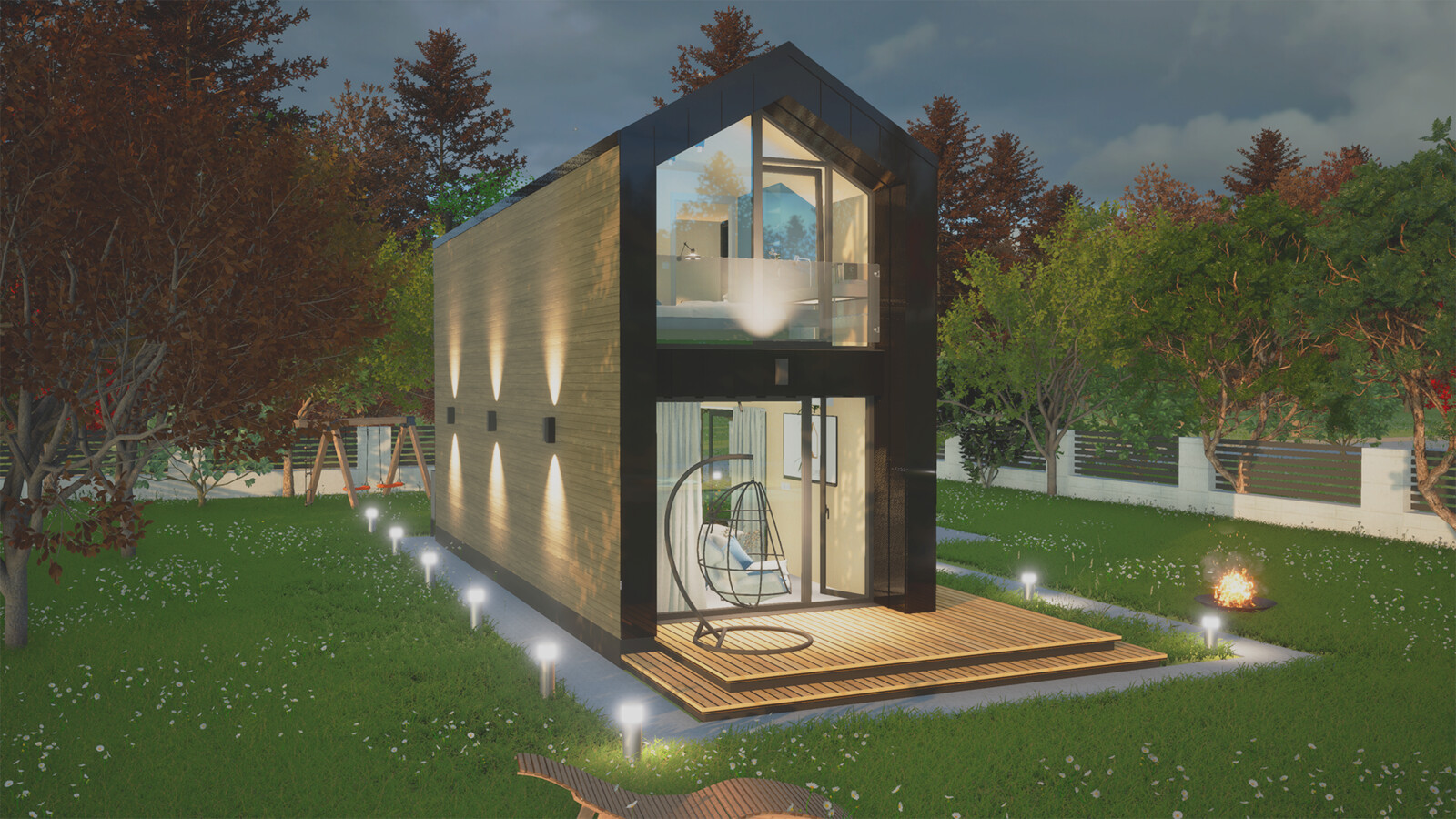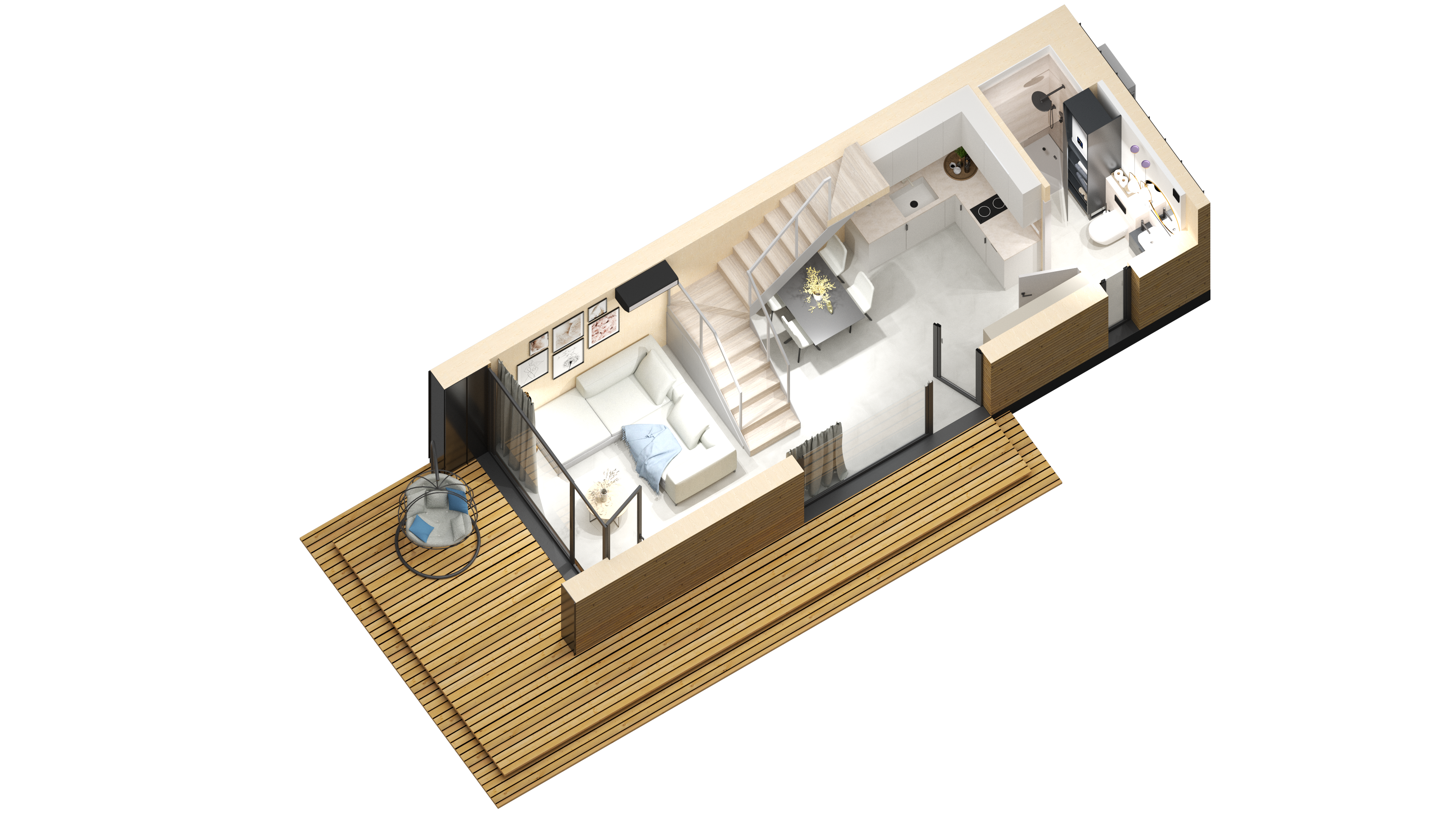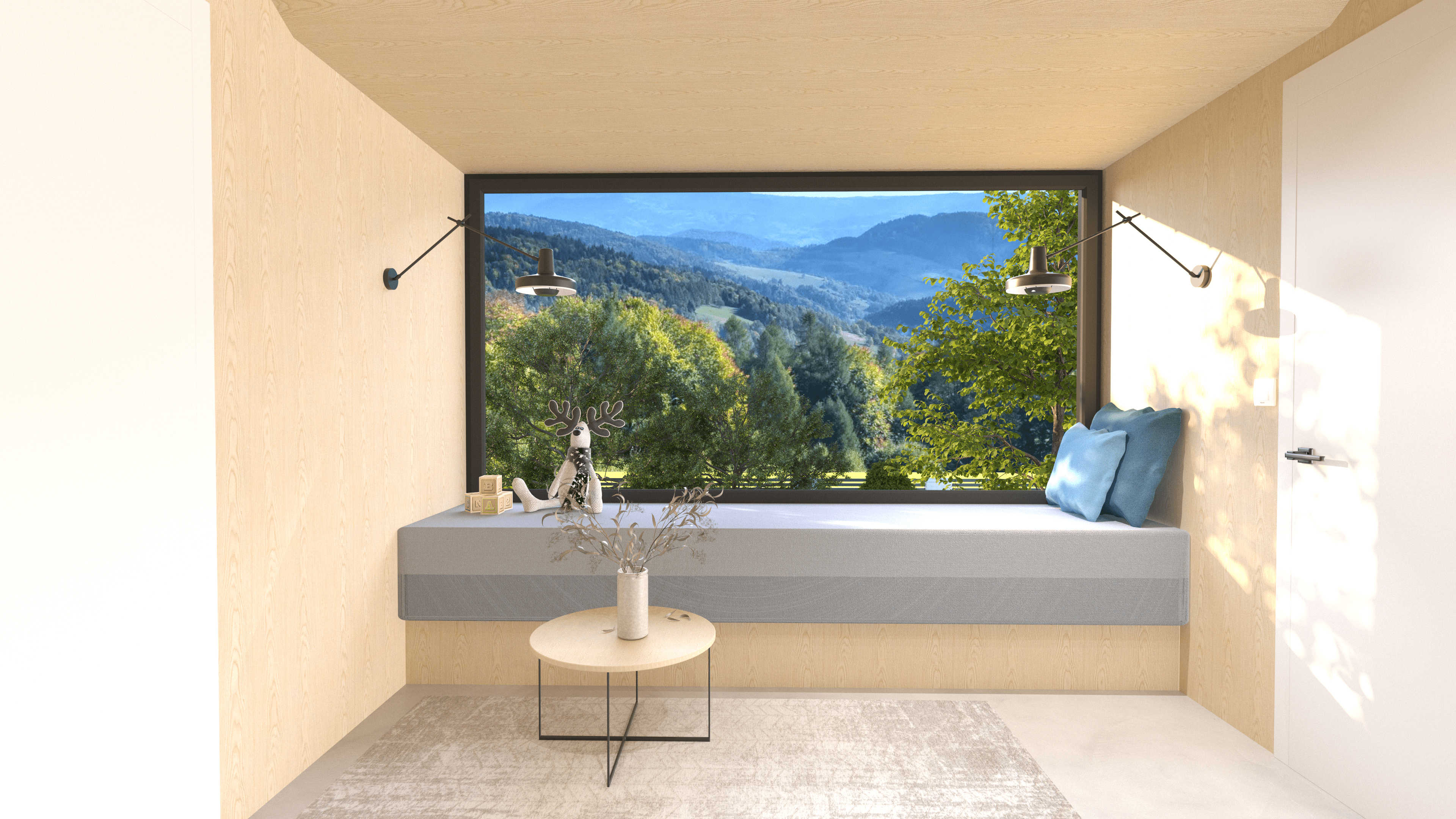 Für das Modulhaus SOL werden zwei Module übereinander gebaut mit einer zusätzlichen Dachgaube im Obergeschoss. Dies gibt dem Haus sein minimalistisches und einzigartiges Design. Es kann sowohl als Hauptwohnsitz als auch als Ferienhaus genutzt werden.