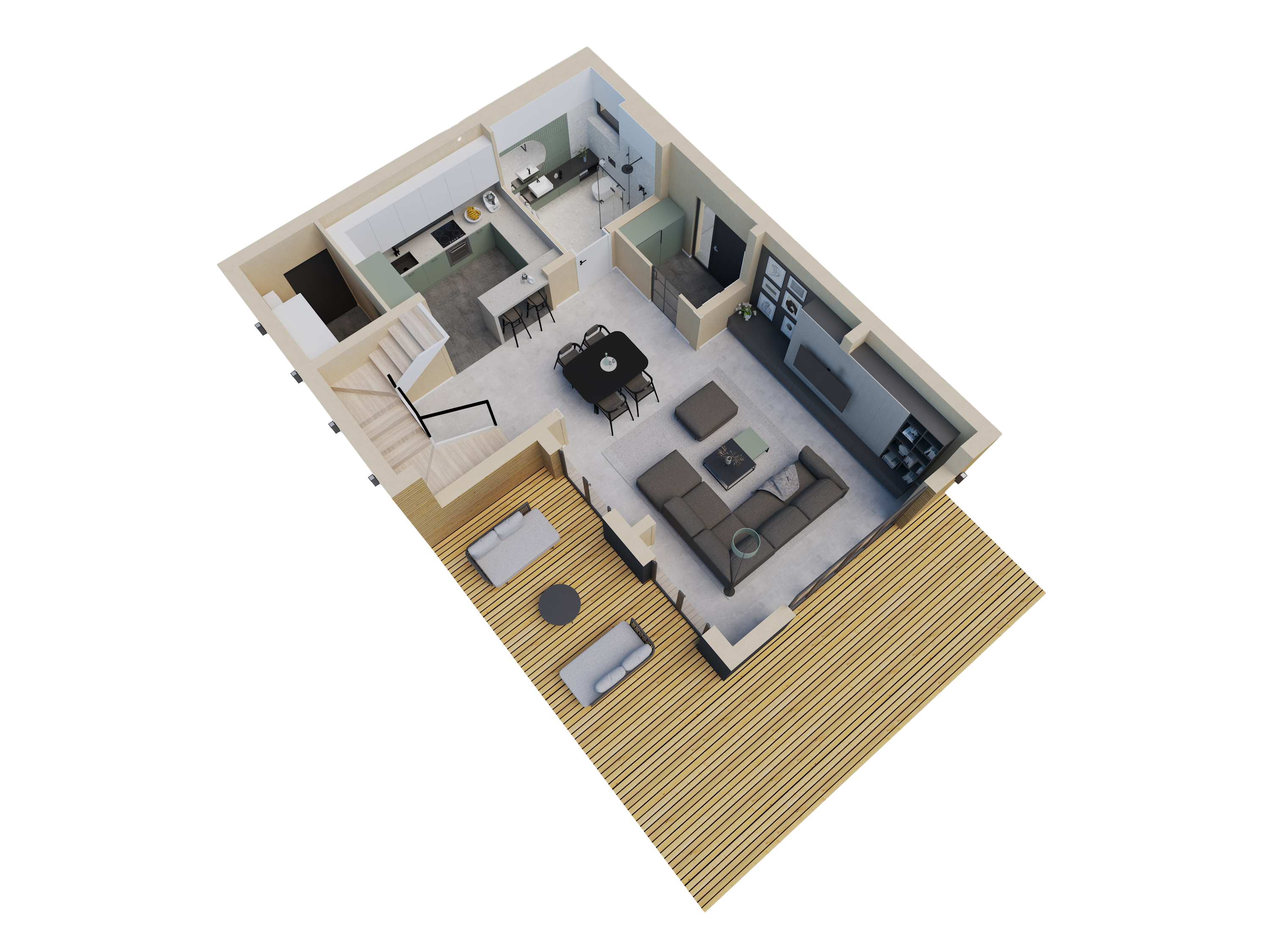 Ein außergewöhnliches Haus für eine 2+1-Familie. Das Wohnzimmer mit seinen großen Fenstern bietet auch an bewölkten Tagen viel Licht. Außerdem überzeugt das Stolmen mit seiner besonders großen Dachterrasse.