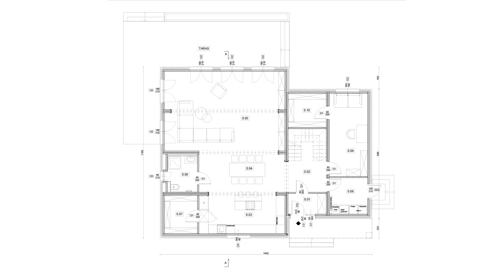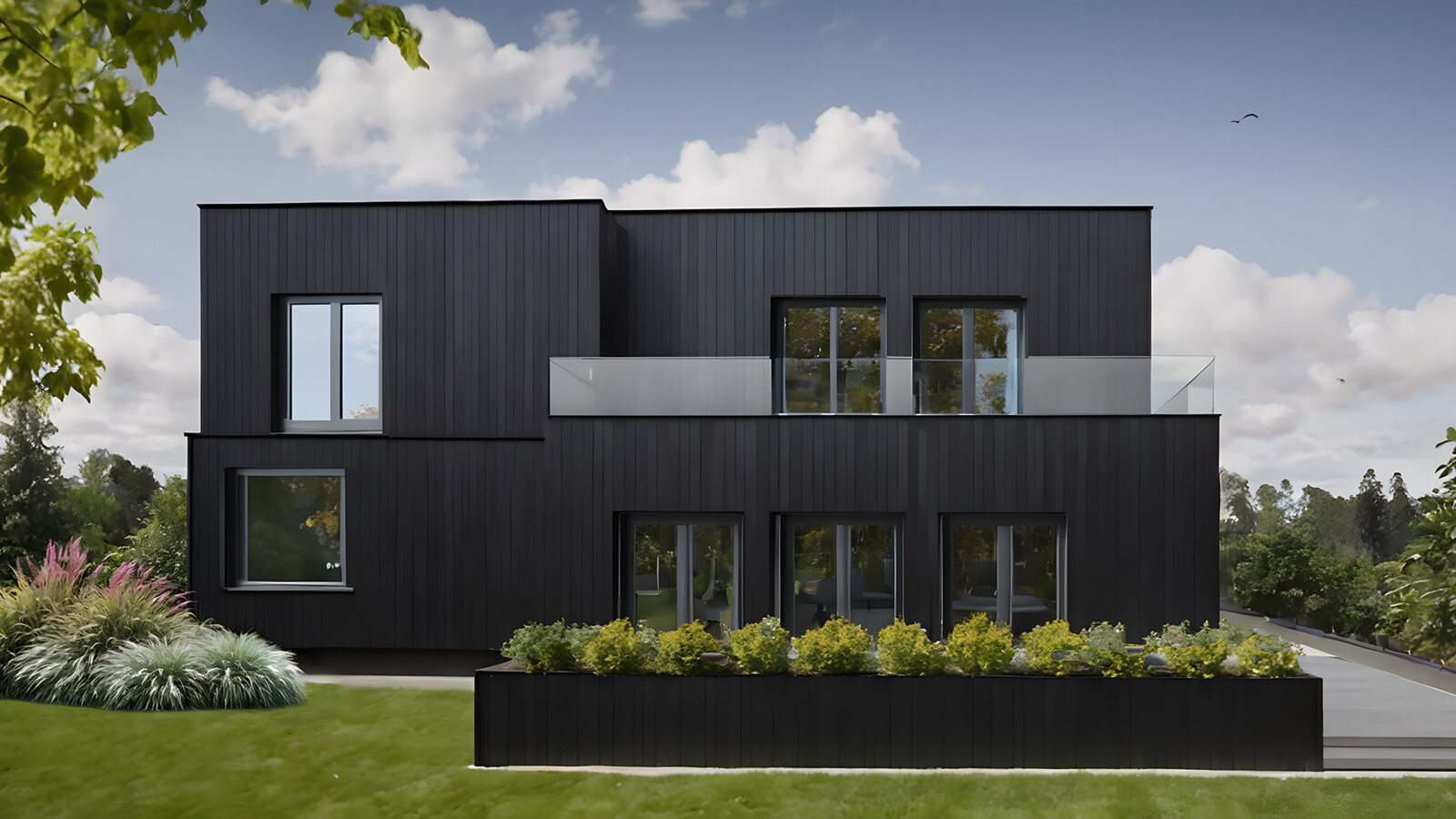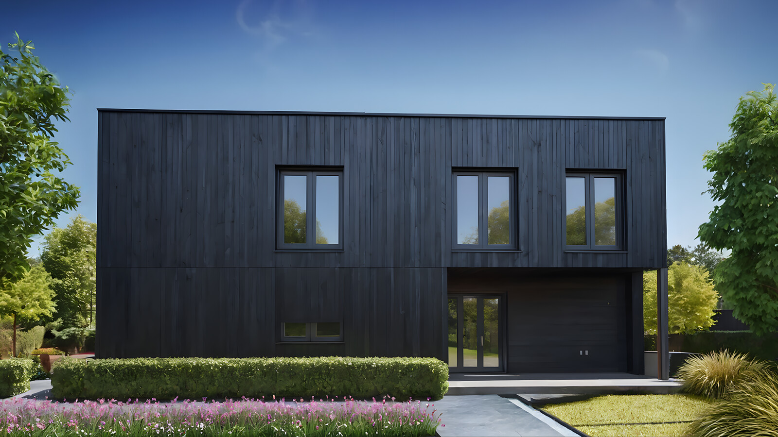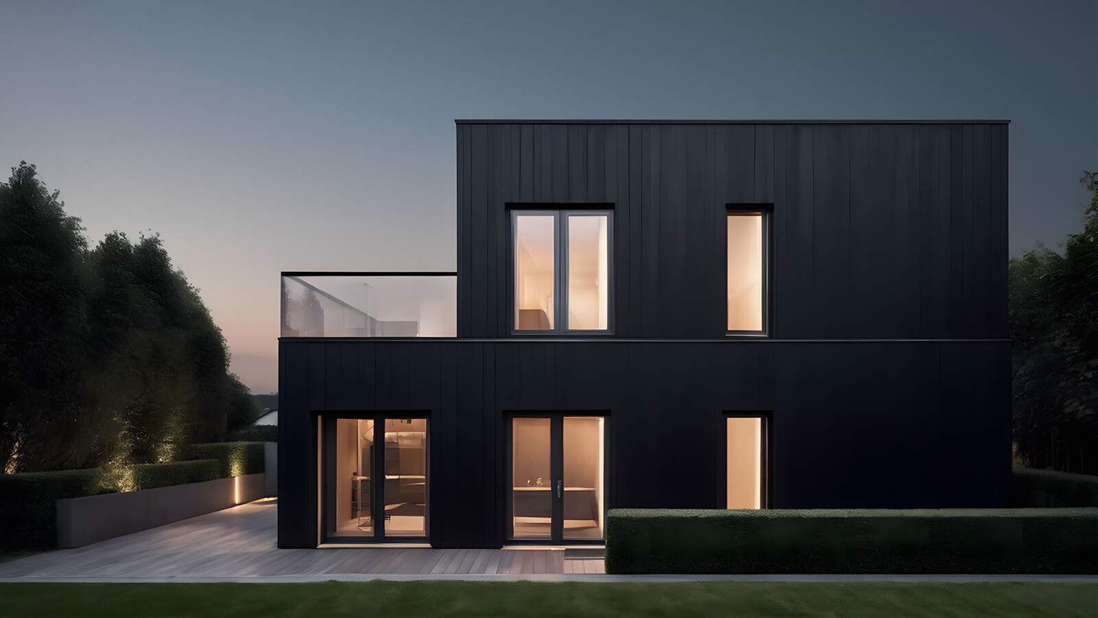 Ein geräumiges zweistöckiges Modulhaus, das mit einer Eckterrasse ausgestattet ist. Der offene Wohnbereich besteht aus einem großen Wohn- und Esszimmer mit Küche. Im ersten Stock befinden vier Schlafzimmer und ein Badezimmer. Ein charakteristisches Element dieses Hauses sind die großen Fenster, die viel Tageslicht hereinlassen.