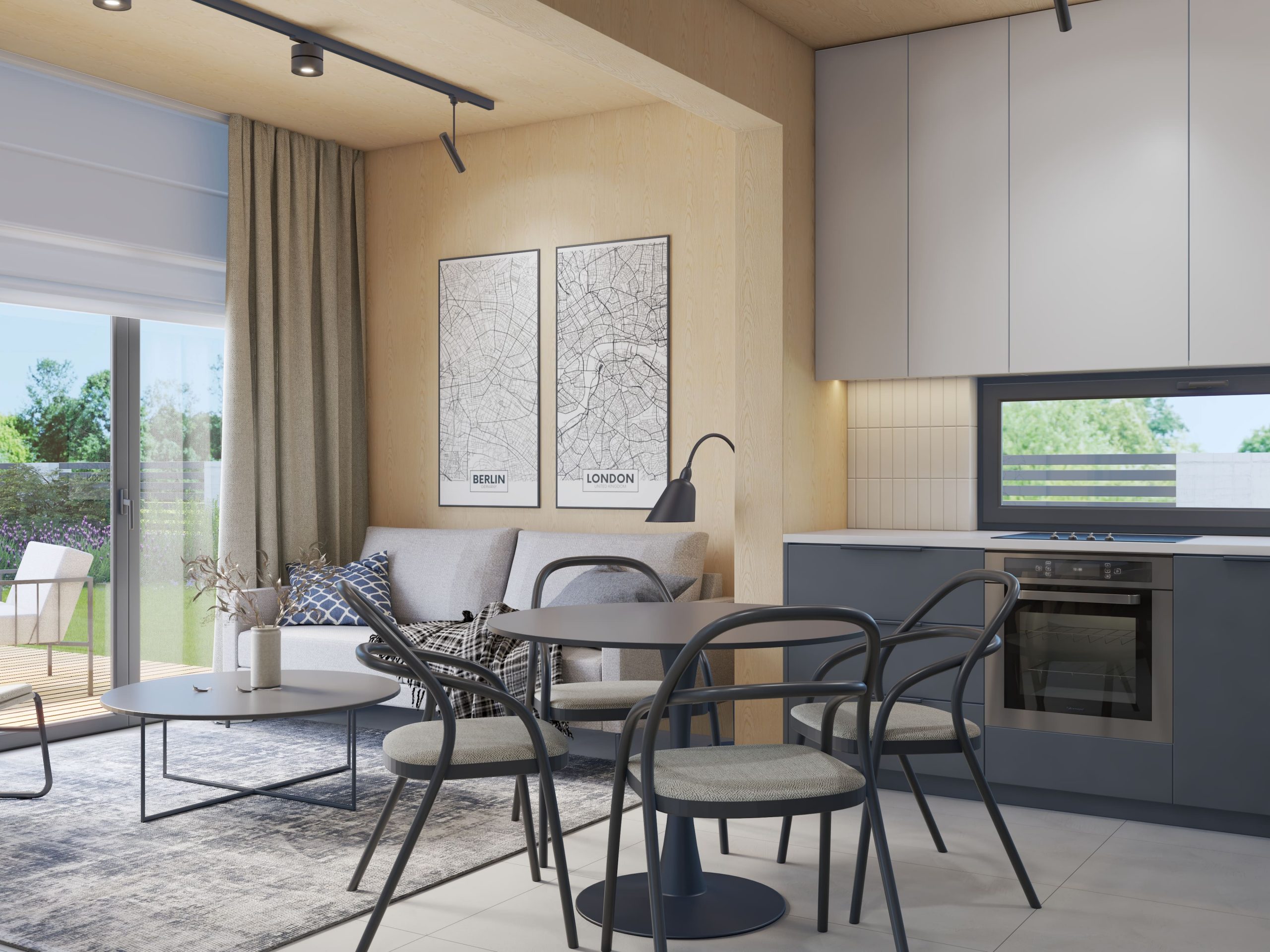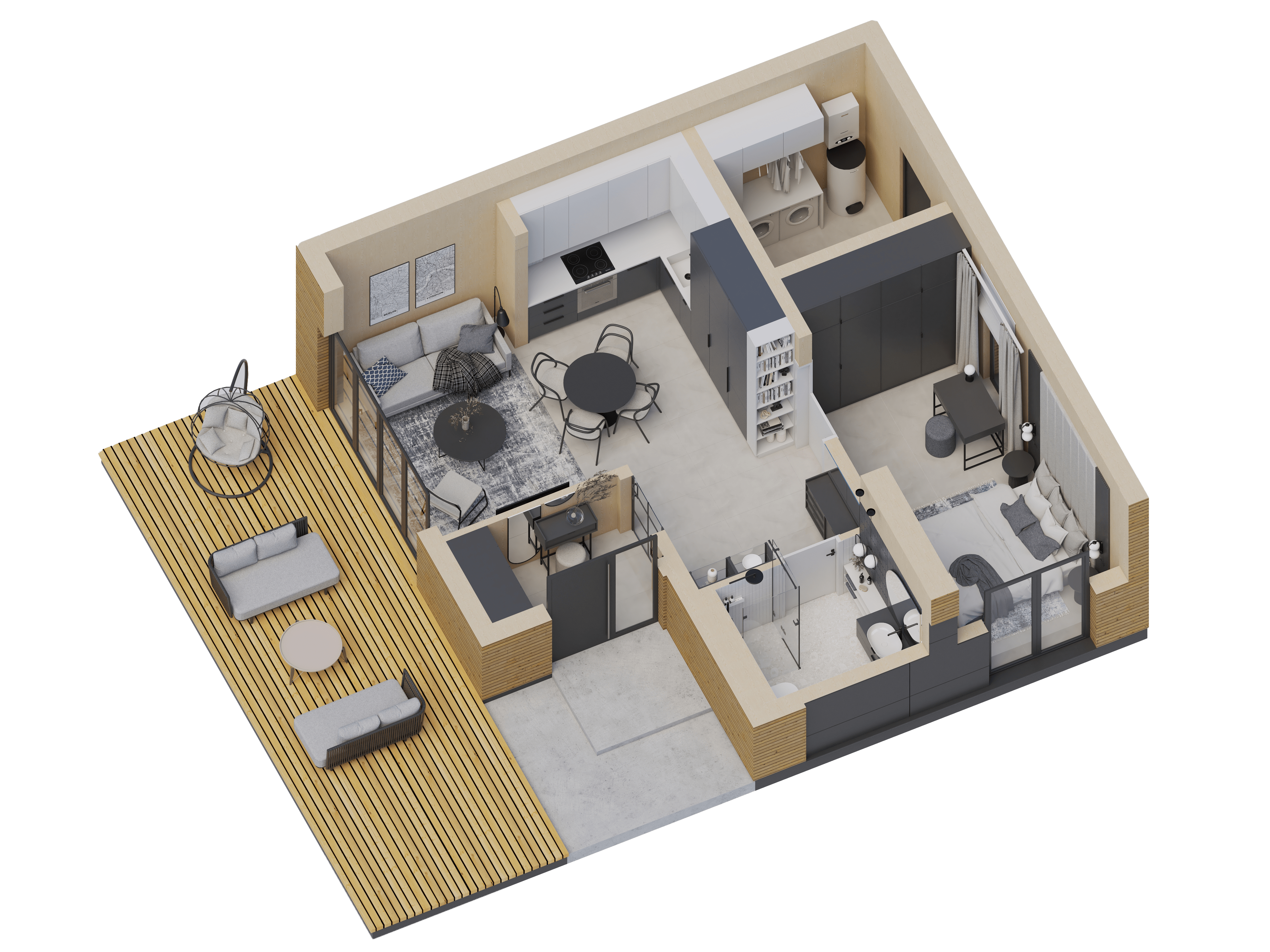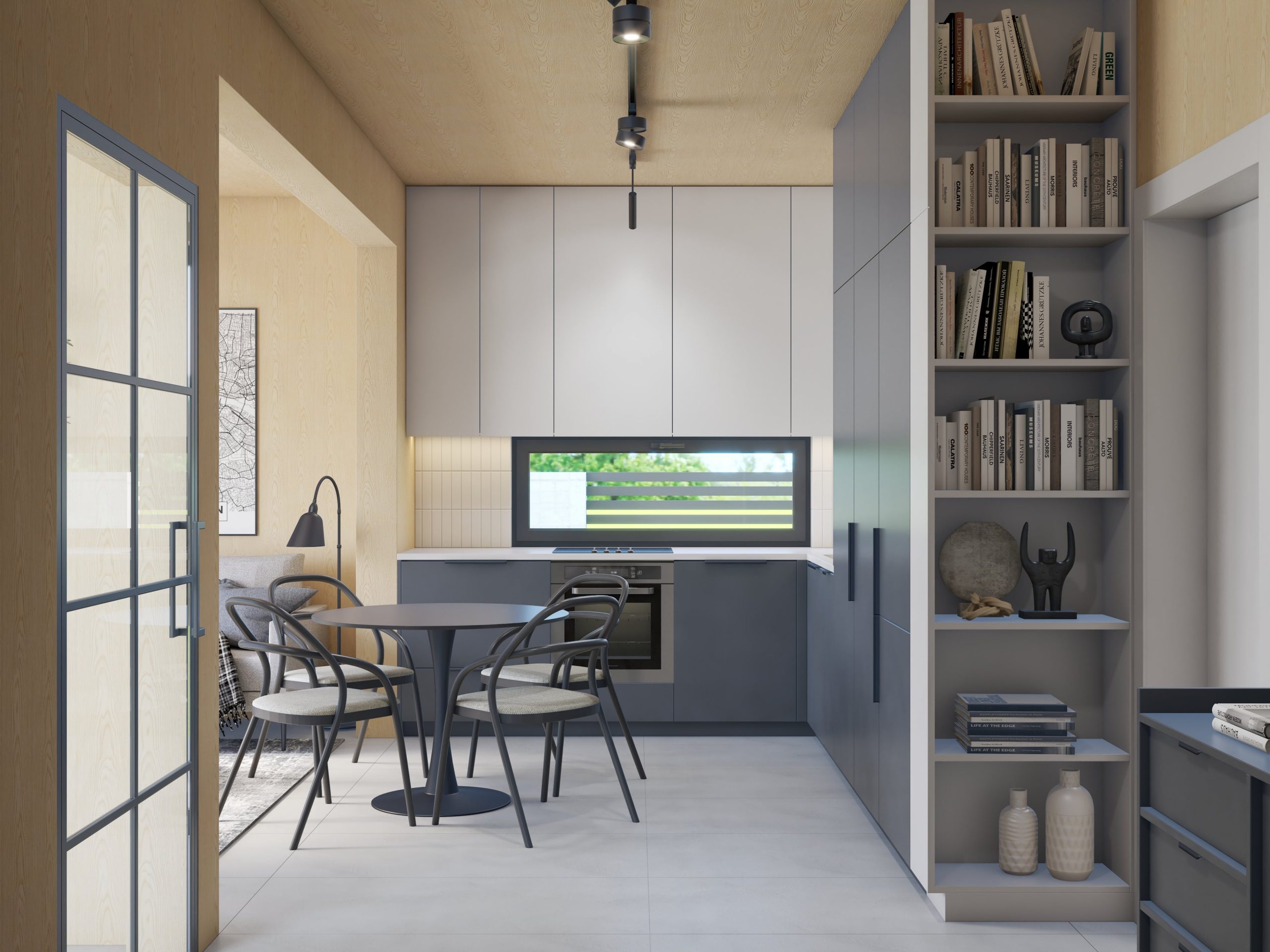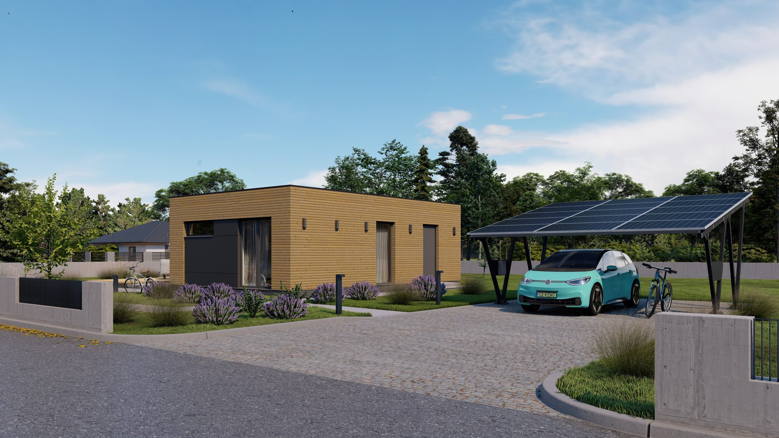 Das Modulhaus Vang ist ein komfortables, einstöckiges Modulhaus mit kompaktem Grundriss und ideal für ein bis zwei Personen. Es wird mit einem Flachdach gebaut.