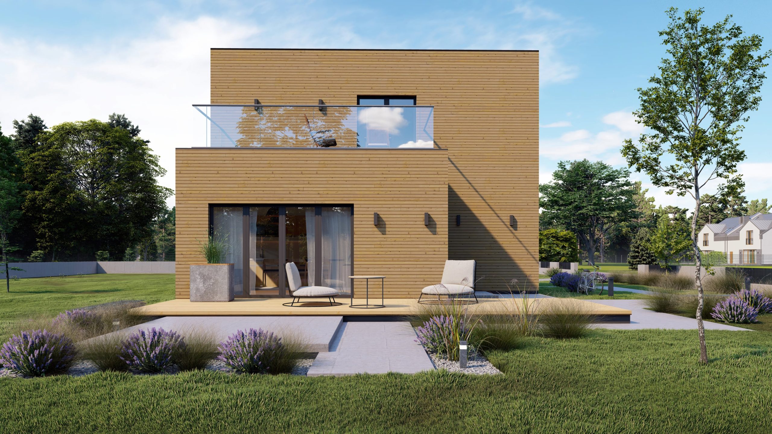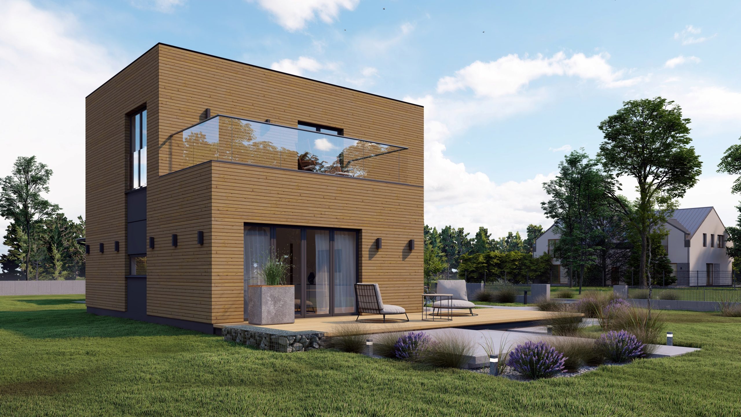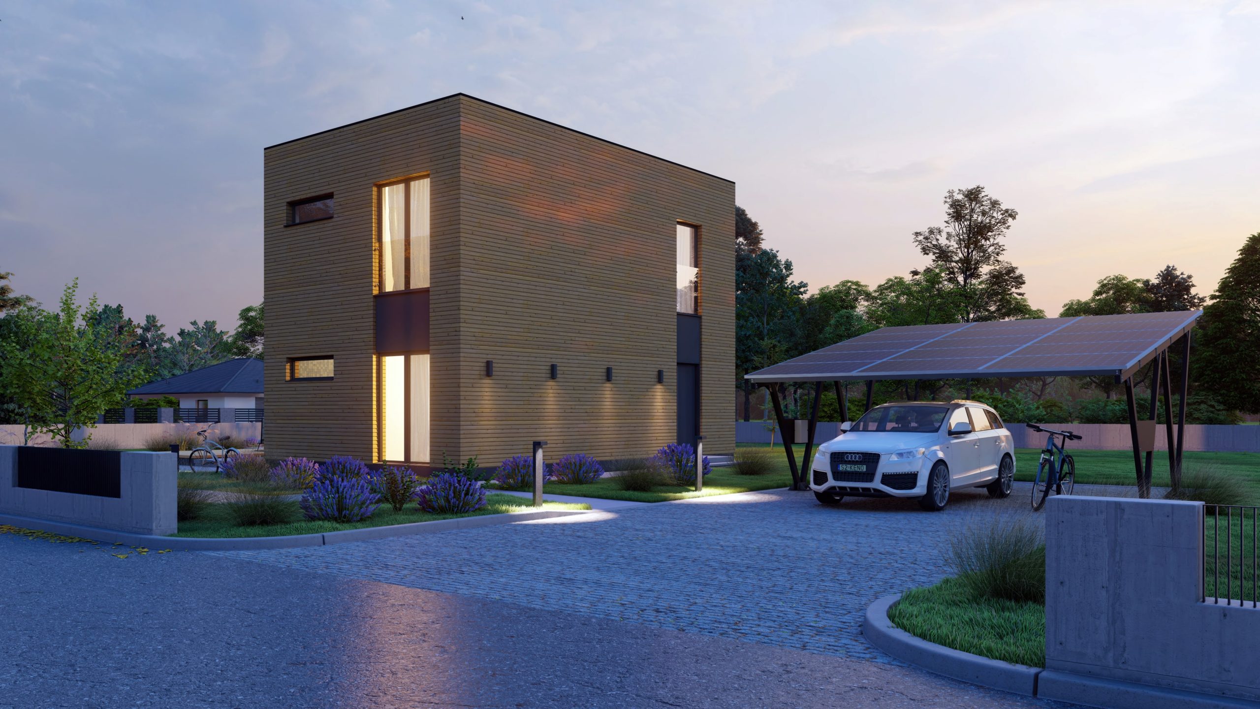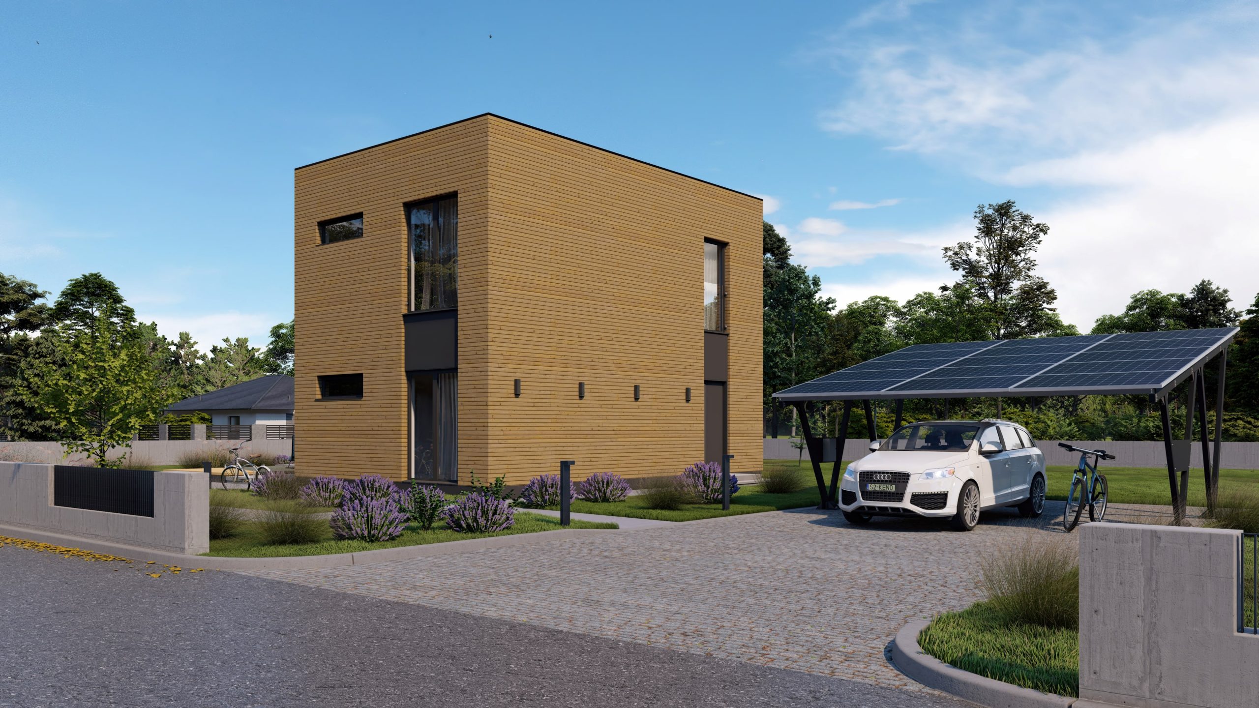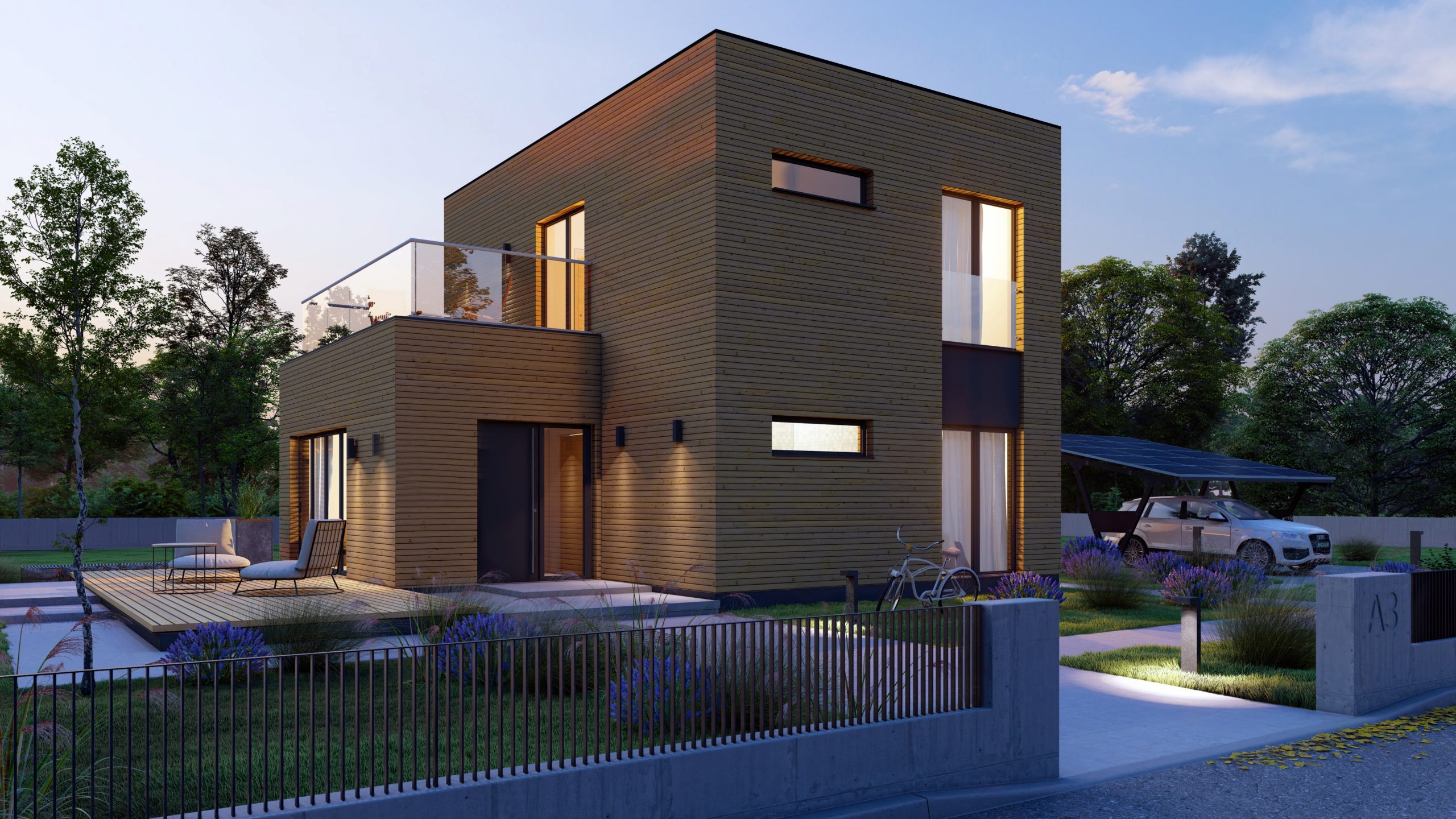 Das Haus Vinje präsentiert sich als ideale Wohnlösung für Familien mit 2+2 Mitgliedern. Seine ansprechende, schlichte Form beeindruckt bereits beim ersten Anblick. Durch den Flur im oberen Vollgeschoss gelangen Sie zur Dachterrasse, die sich ideal für entspannte Momente eignet.