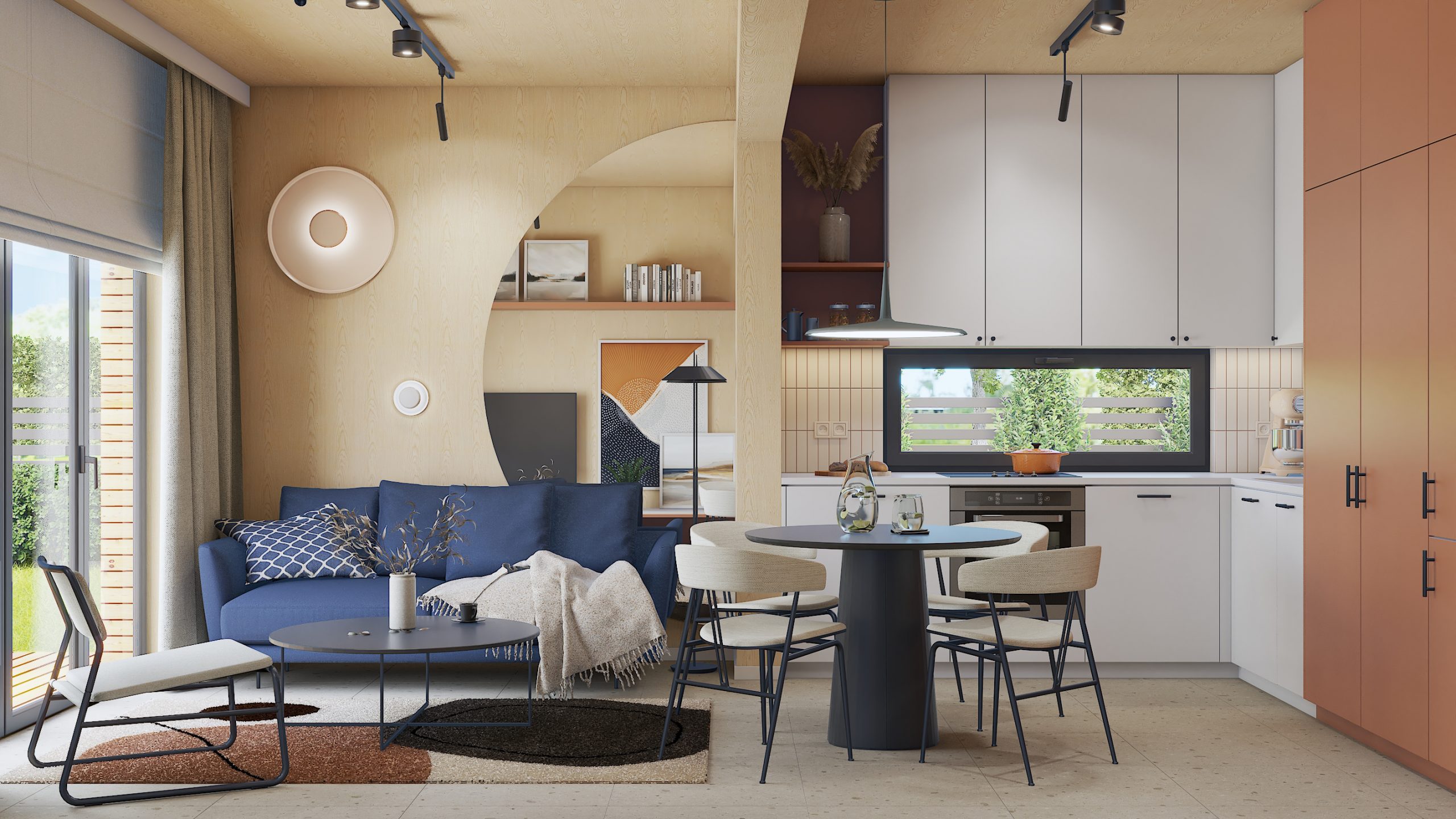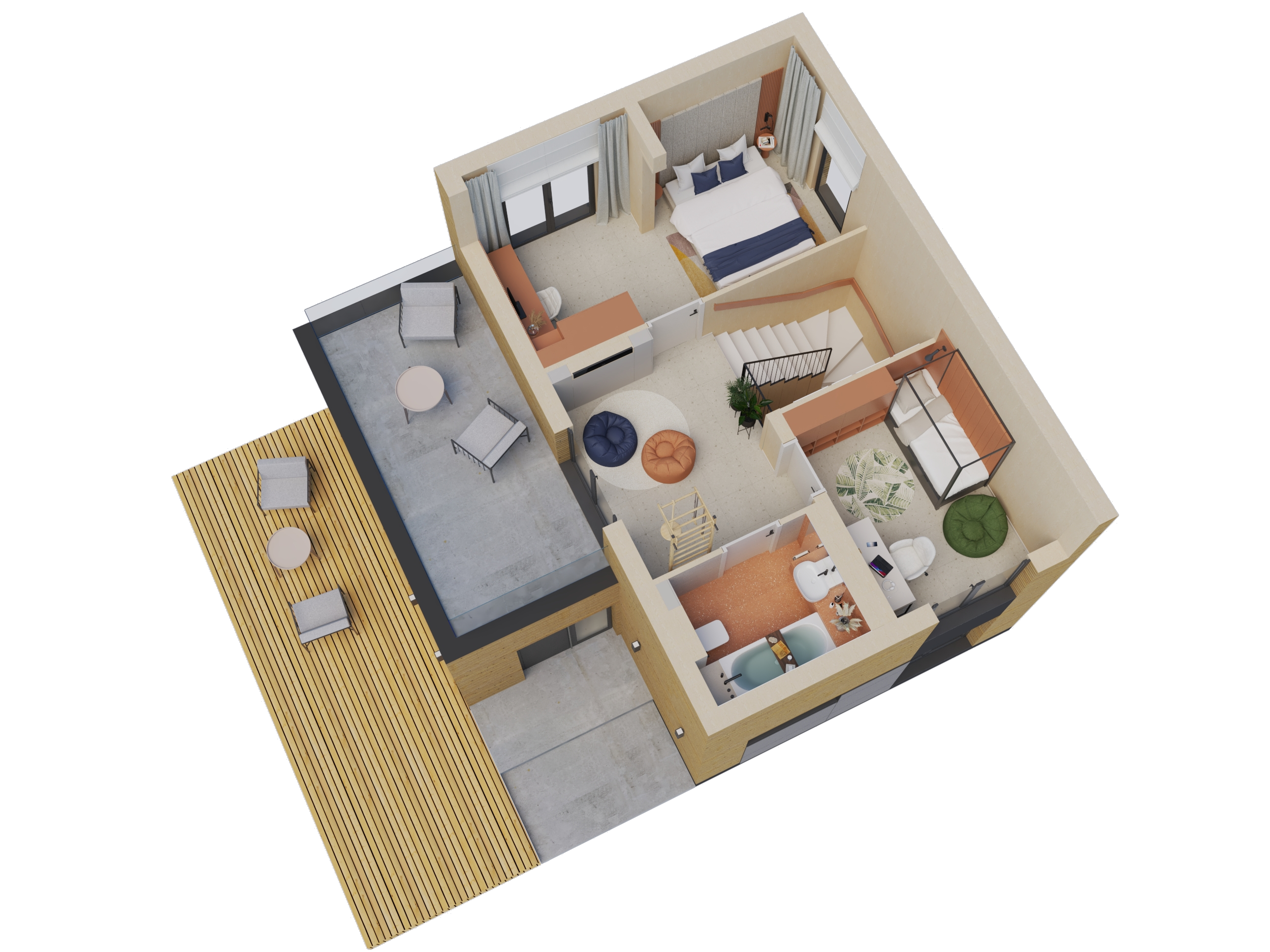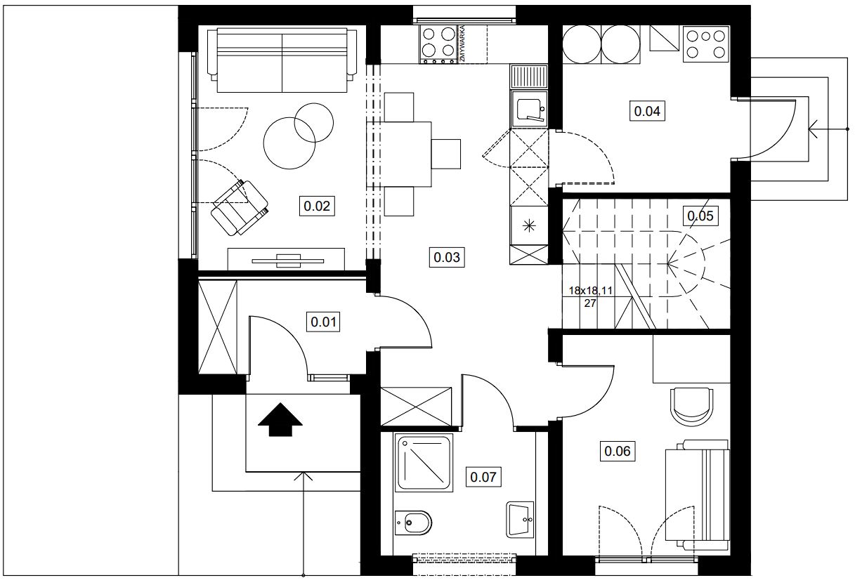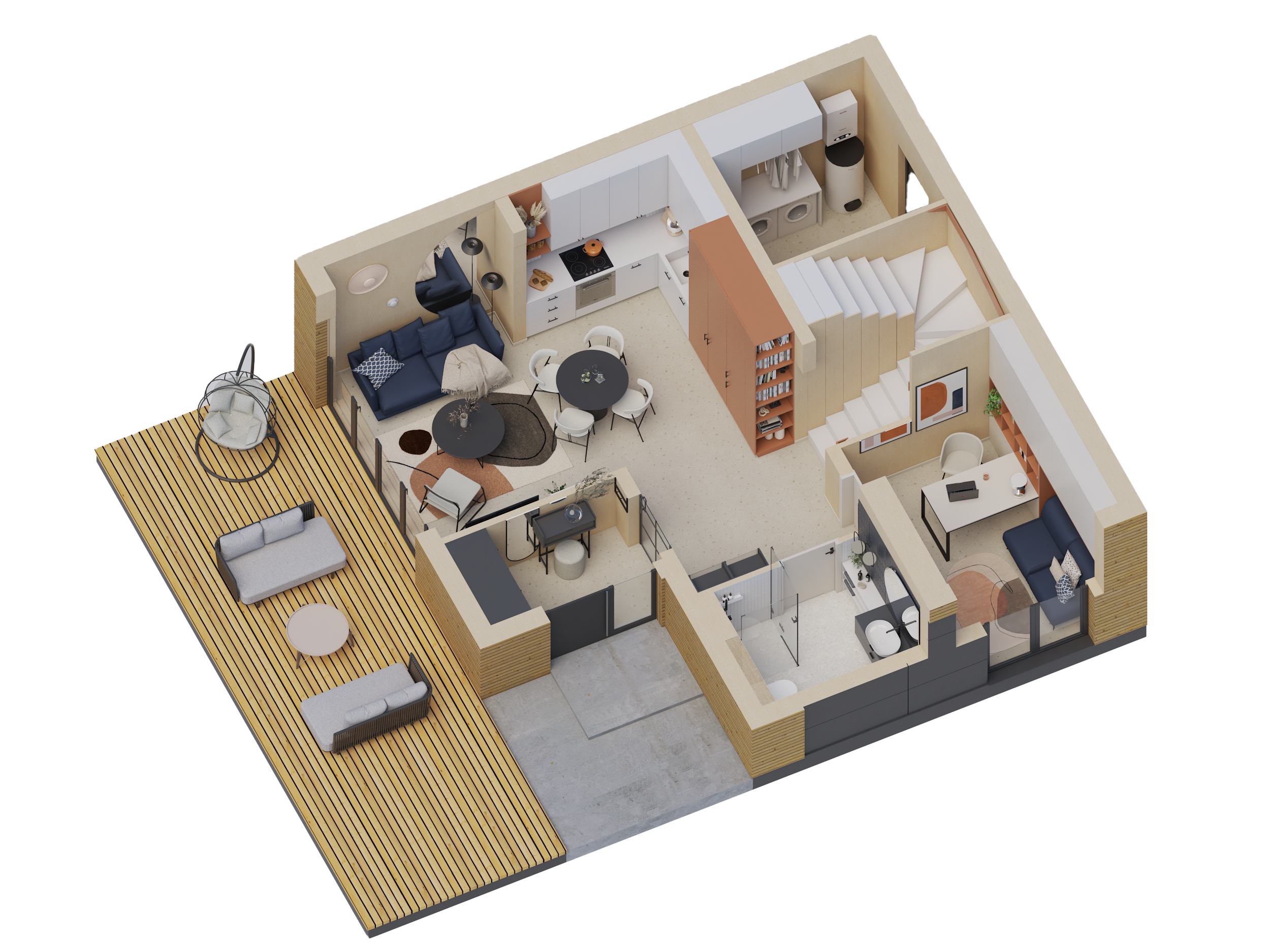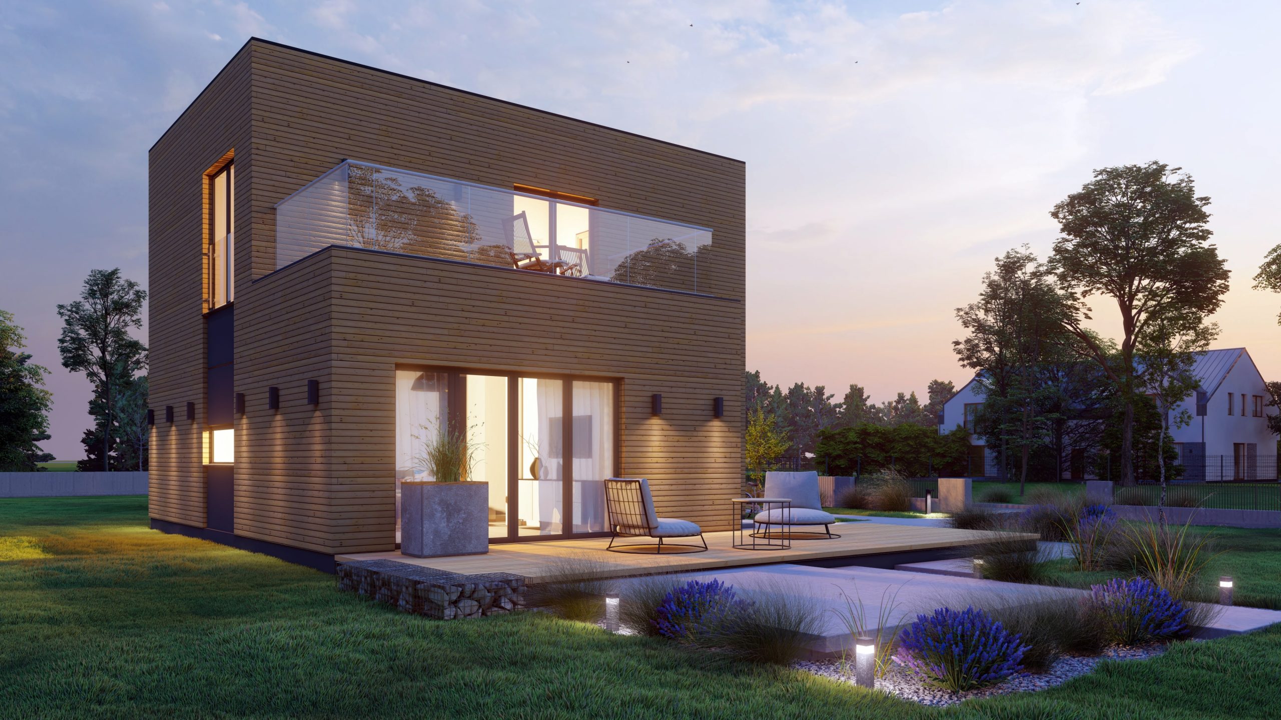 Das Haus Vinje präsentiert sich als ideale Wohnlösung für Familien mit 2+2 Mitgliedern. Seine ansprechende, schlichte Form beeindruckt bereits beim ersten Anblick. Durch den Flur im oberen Vollgeschoss gelangen Sie zur Dachterrasse, die sich ideal für entspannte Momente eignet.