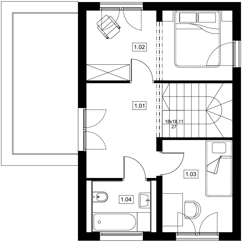 1.03 | Schlafzimmer 2 | 8,89 m² |